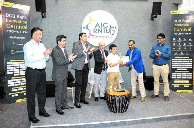 AIC-RNTU (Incubation Centre supported by Atal Innovation Mission, NITI Aayog) organised DCB Bank Innovation Carnival Pitch-a-thon 2019 recently. The occasion was graced with presence of Prasanna Lohar, Chief Innovation Officer, DCB Bank, Mumbai, Nitin Vats, Director, AISECT and other jury members for Pitch-a-thon were Pradeep Karambelkar, Founder and Managing Director Vision Advisory, Hitesh Ahuja, Founder and CEO Customise Homes, Ronald Fernandez, CEO AIC-RNTU Foundation. Pitch-a-thon was followed by a panel discussion by all jury members in which Prasanna Lohar highlighted future of Crypto currency, Block chain and various initiatives by DCB Bank to support startups, whereas Pradeep and Hitesh explained current scenario of Madhya Pradesh Ecosystem and various initiatives by the Government for startups.
