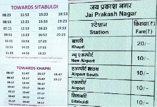 During morning hours eight services would be available on way to Khapri, same during the afternoon time and thereafter in evening also eight services would run in direction of Khapri, the last station on the route. Also on way to Sitabuldi Inter-change station to Metro services would be available in three slots, morning, afternoon and evening. Means every half an hour a service would be available on either of the direction from Jaiprakash Nagar station. In the last week, Commissioner of Metro Railway Safety (CMRS) Janak Garg and his team had examined Jaiprakash Nagar Station and gave green signal to open the same for travellers.