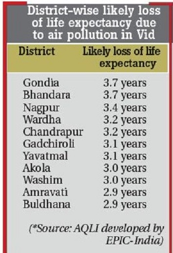 Ignorance costs, and so does negligence. In case of Vidarbha, ignorance of people about the adverse impact of air pollution on their lives, and negligence of authorities concerned towards deteriorating air quality, may have costs in terms of life expectancy. As per the Air Quality Life Index (AQLI) database developed by University of Chicago, air pollution is likely to affect the life expectancy in Vidarbha districts from 2.9 years to 3.7 years.
