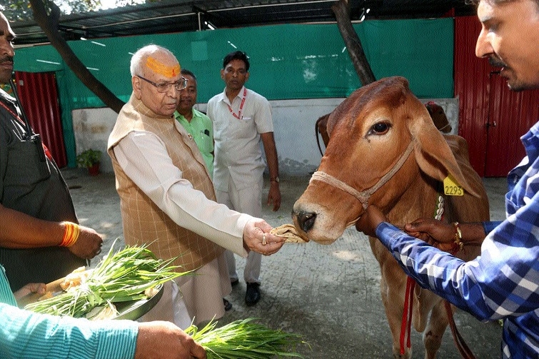 Governor Lalji Tandon inspects Adarsh Gaushala at Raj Bhavan