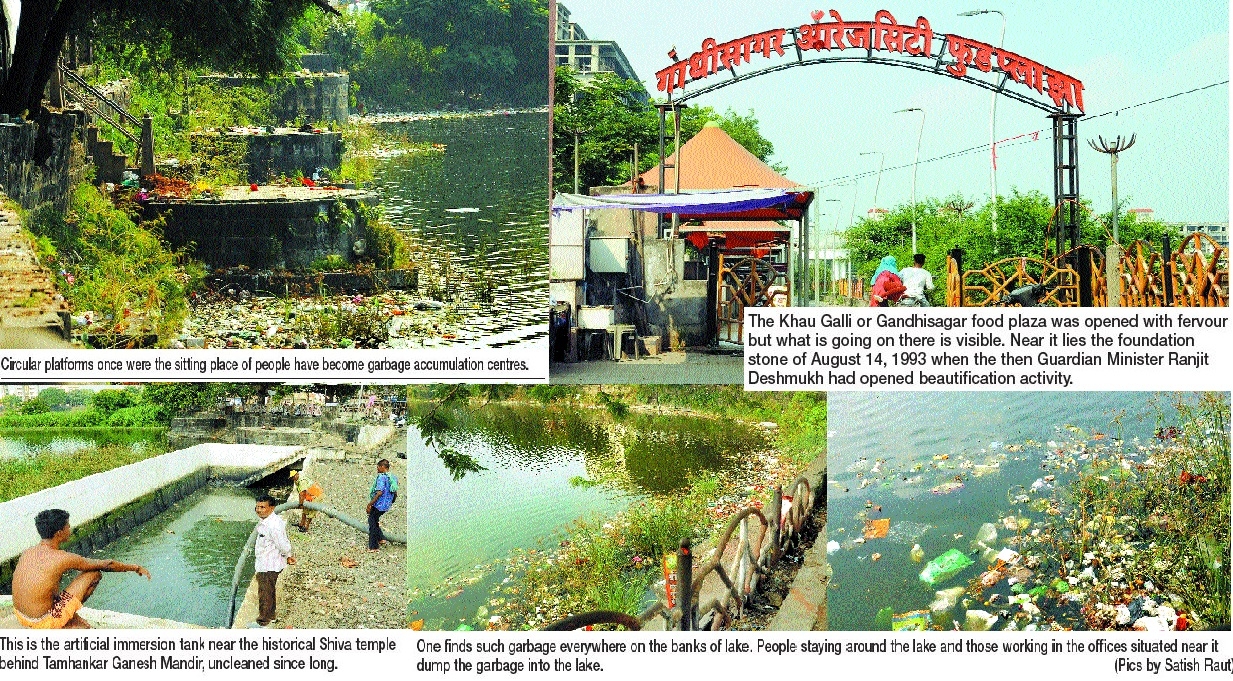 The lackadaisical attitude of people who don’t care while using any public places have made the matter worst for the historical Gandhisagar lake situated near Tilak Putla. The Gandhisagar lake, also known as Shukravar Talao and Jumma Talab, is being ignored by political leaders years together. Now public and civic authorities too have joined hands in converting this once beautiful waterbody into a dumping ground. There are many well-known establishments, temples, Raman Science Centre, Vidarbha Premier Housing Society, Shikshak Sahakari Bank, Tata Parsi School, Agyari, Hindu Dnyanpeeth Convent near it. The water in the lake is an outcome of aquifers and the rain.