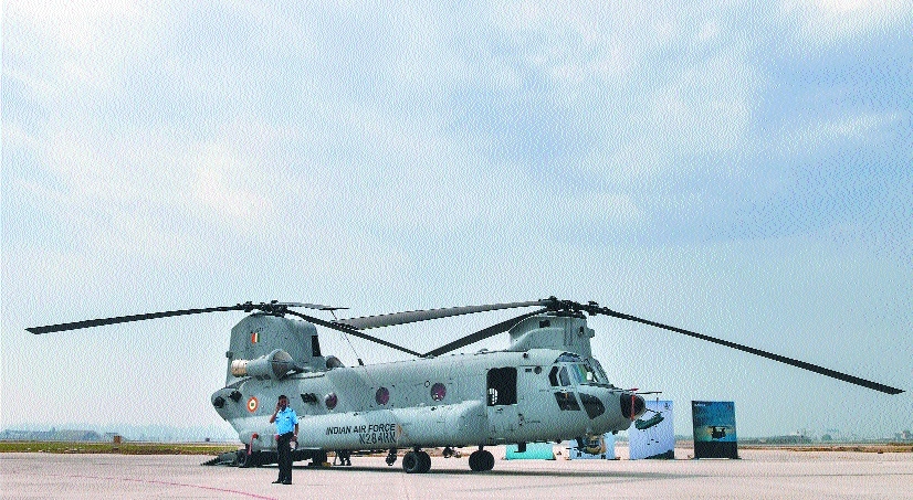 AIR Chief Marshal B S Dhanoa on Monday formally inducted four US-made advanced multi-mission all-weather Chinook helicopters at Air Force Station 12 Wing here. Two hangars and logistics facilities were created here for the Chinook helicopters. The Chinook, twin-engine, tandem rotor, is multi-role, vertical-lift platform, which is used for transporting troops, artillery, equipment and fuel. Each helicopter, manufactured by US aerospace major Boeing, has a payload capacity of about 10 tonnes which is a major boost to India’s strategic airlift capability.