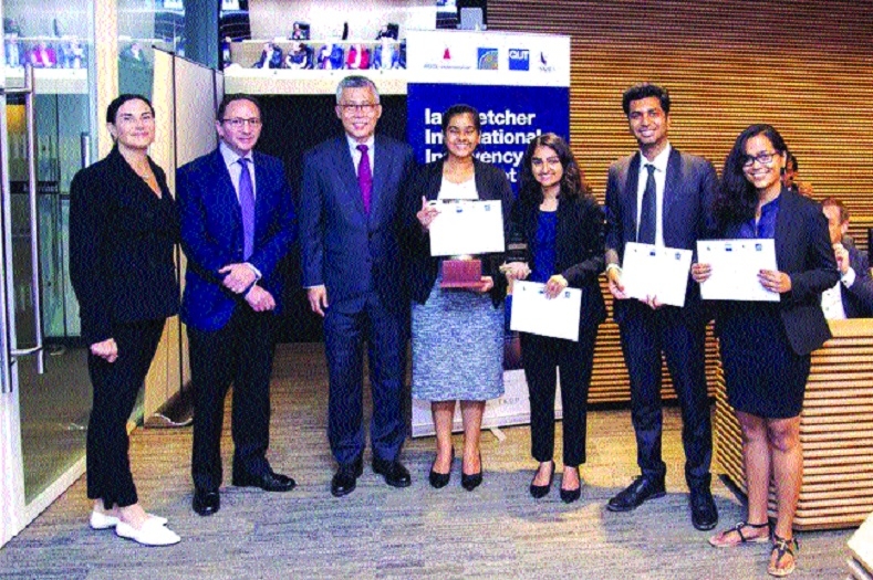 Team of students from National Law Institute University (NLIU) won the world finals of prestigious Fletcher International Insolvency Law Moot Court competition held in Singapore from March 29 to 31. Team of the winners from NLIU included Aishwarya Srivastava (Fifth Year), Udyan Arya (Fifth Year), Christina Shaju (Fifth Year) and Kuhoo Mishra (Third Year).
