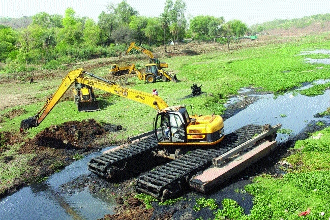 Bhopal Municipal Corporation (BMC) is continuing the work of desilting of Upper Lake in Bhadbhada area. It is using JCB machines, porcelain machines and dumpers in digging and transportation of excavated silt.
