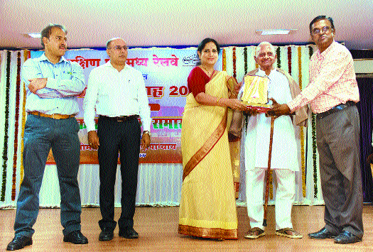 The function was held Gunjan Sabhagruha at DRM office campus on Friday. A specialty of the event was felicitation to 102 year old retired employee, Krishnarao Singham. He is the oldest pensioner and was appointed in year 1936 in then South Eastern Railways are Clerk and superannuated in 1977. DRM felicitated 136 employees for their meritorious work and also gave away group awards. In all 22 shields were given away to various departments for their exemplary work. Additional Divisional Railway Managers Y H Rathod and B K Rath were also present. Sr. Divisional Personnel Officer (Sr. DPO) R Ganesh, DPO V V Pathak and others worked for the programme.