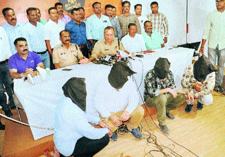 Joint CP Ravindra Kadam, Addl CP B G Gaikar, DCP Nilesh Bharne, ACP Sudhir Nandanwar and others with the arrested accused (faces covered)