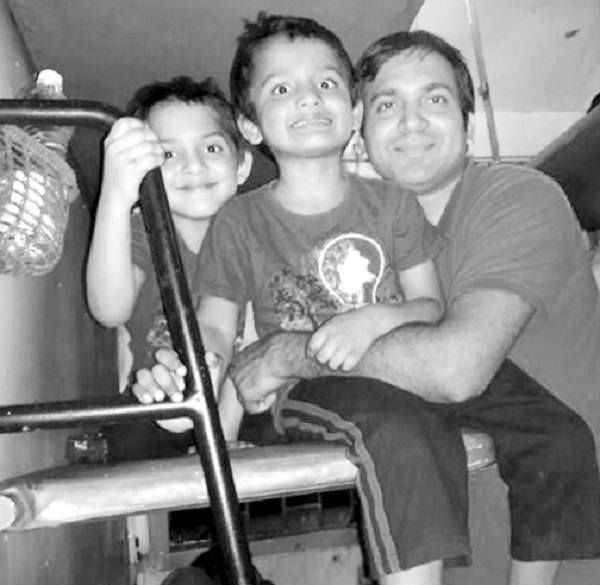 Shital Mahajan-Rane, her husband Vaibhav Rane with their 10-year old twin boys.