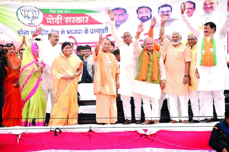 Uttar Pradesh Chief Minister Yogi Aditya Nath came down heavily on Congress while addressing public rally in support of party’s Lok Sabha candidate Narendra Singh Tomar in Ambah of Morena Lok Sabha constituency on Wednesday. He said that Congress is in habit of speaking lies. Talking about election, he said that this election is not for an individual but for nation.
