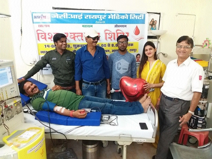 A blood donation camp was organised by JCI Raipur Medico City at City Blood Bank Ashram on the occasion of World Blood Donor Day. The members of the JCI Raipur Medico City donated blood on the occasion. Around 40 unit blood was donated in the blood donation camp. The people was also motivated and made aware for blood donation.