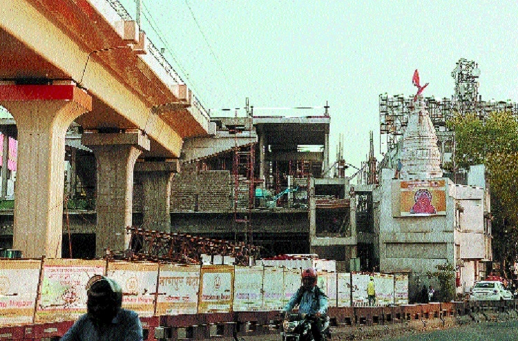 Might and the Almighty: In race to transform the city into Smart City, the authorities have neglected even the God. The Hanuman temple at Ajni has become dwarf before the upcoming Metro Station.