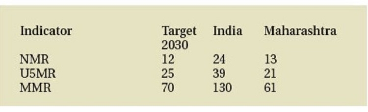 Against India’s Maternal Mortality Ratio (MMR) of 130, Maharashtra is 61; India’s Neonatal Mortality Rate (NMR) is 24 while Maharashtra stands at 13