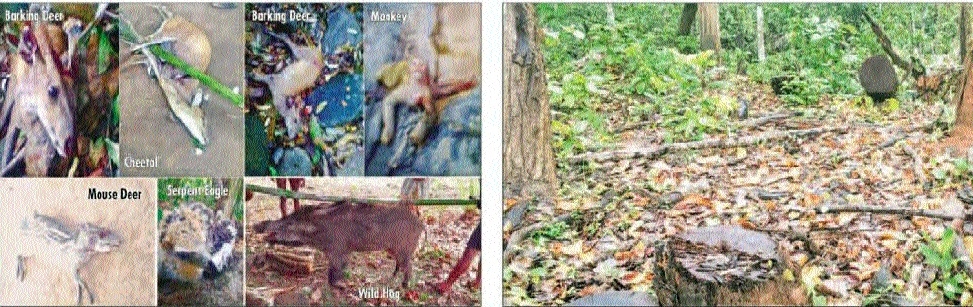 Since, all the villages mentioned in the report are highly Naxal-affected, villagers didn’t agree for statement/report. On being interrogated about the farmlands, villagers claimed of having lease (Patta), but couldn’t show the documents. So it is necessary to examine the Forest Rights Certificates in these areas. Although, the team couldn’t find any solid evidence of the illegal hunting, but possibility of hunting can’t be fully discarded. A local villager Chaitur at Kasirras told the investigating officers that two of his goats were hunted by Wild Dogs (Dhole) in the March this year. He had applied for compensation with a Beat Guard, but so far no action has been taken on his application. There was apparent dejection and dissatisfaction in the statement of the Chaitur. In the absence of compensation, villagers often try to revenge killing by setting up snares. There is also a tradition of ‘Parad’ prevalent in the area.