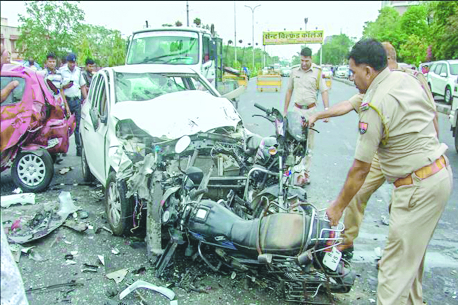 Mangled remains of vehicles that met with an accident near Birla Temple in Jaipur on Friday. (PTI)