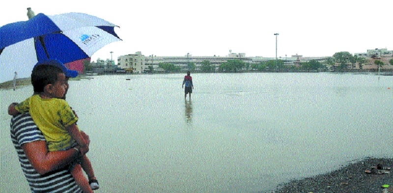 Swimming they say is all about good times, and perhaps rain god took pity on us Nagpurians and helped convert the vast open space of Reshimbagh ground into a big open free-to-use pool. Incessant rains during last two days that pounded the city led to accumulation of rain water in many areas. (Pic by Satish Raut)