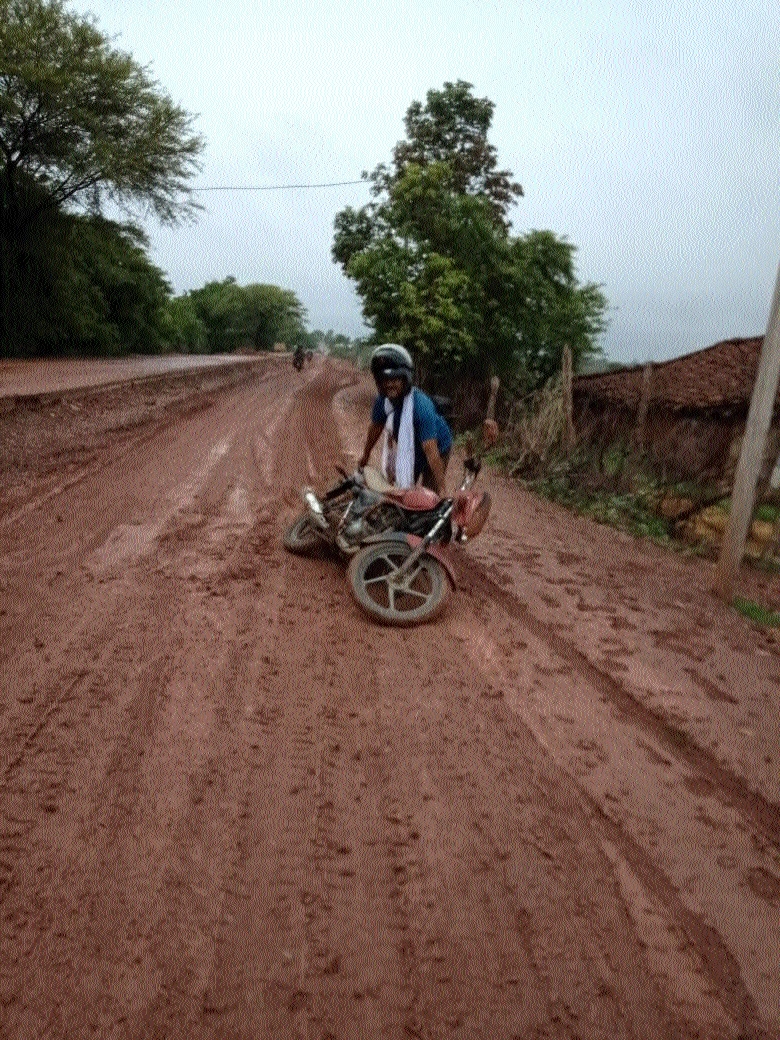Hundreds of vehicle riders are suffering injuries due to accidental skidding of bikes on the mud-filled Maharajpur Taradehi road. The red soil laid on the road is becoming the cause for skidding of two-wheelers in rainy season. Residents have alleged that red soil has been laid instead of gravel over the road by contractor of the department concerned. Hundreds of such cases of accidents have occurred in the last few days after the occurrence of heavy rainfall here.