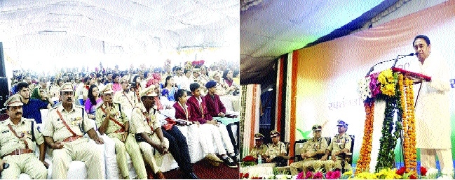 Chief Minister Kamal Nath addressing police officers honoured with medals for their outstanding performance and their families at CM House on Friday.