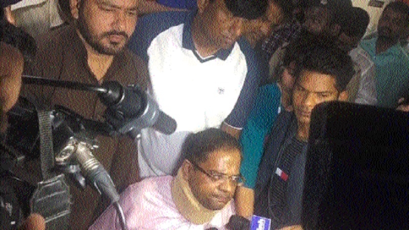 Amit Jogi speaking to media after being discharges from hospital in Raipur.