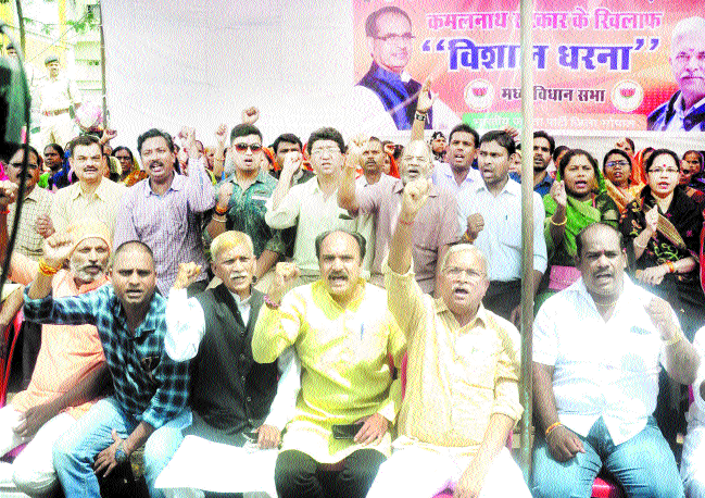 The Bharatiya Janata Party (BJP) staged dharna in all Assembly constituencies of State and protested against alleged negligent attitude of Kamal Nath Government towards farmers on Friday. It accused State Government of pushing farmers into deep financial crisis by making promise of waiving loan upto Rs 2 lakh. BJP leaders led the dharna at different places. The dharna was attended by numerous farmers. Ex-Chief Minister Shivraj Singh Chouhan participated dharna in Ichawar area of Sehore and told that excess rains have damaged kharif crops, including soybean, and no one is hearing the voice of farmers.