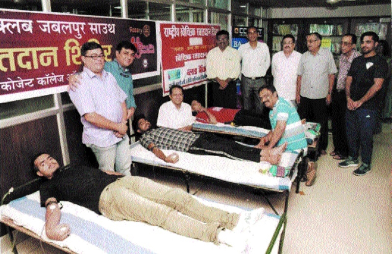 Rotary Club of Jabalpur South organised a blood donation camp on Tuesday under their objective of serving for humanity. In this camp total of 40 units blood was collected. Club President, Akhil Mishra, Rohit Mata, Ravi Vasihya and Rajeev Agrawal encouraged students to donate blood for a noble cause. College Director Harsih Rijhwani informed students about benefits of donating blood.