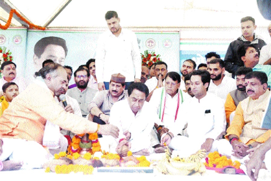 CM Kamal Nath performing puja during foundation laying stone ceremony for Bhopal Metro Project on Thursday. Mayor Alok Sharma, Minister Jaivardan Singh, MLA Arif Masood, ex-Minister Ramkrishna Kusmaria etc are also present on this occasion.