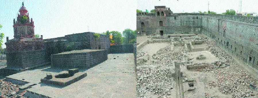 After the entrance, is a square stone foundation which may have been used for accommodation. There is an underground house along with ventilation below the foundation. Dr Virag Sontakke, Assistant Director, Department of State Archaeology and Curator of Central Museum Nagpur, Government of Maharashtra, told ‘The Hitavada’ that conservation, preservation and restoration work of Lakhuji Raje Jadhav Rajwada was almost complete. “The conservation and restoration work of Sawkarwada, Kalakot, Rang Mahal and Neelkantheshwar Mandir is in progress,” he added. Rang Mahal is place where Jijausaheb had played ‘Holi’. It is close to the palace. Rang Mahal is the place where Shahaji Raje had seen Jijabai playing ‘Holi’ before their marriage. Neelkantheshwar Mandir, which dates back to 8th-10th Century, has an inscription of Lakhujirao Jadhav for revival of the temple. In front of this Hemadpanti style temple, there is a massive bar arranged by stairs to the bottom of the square.