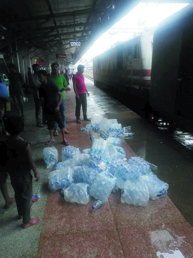 Unauthorised brand water bottles seized from the train at Bhopal Railway Station.