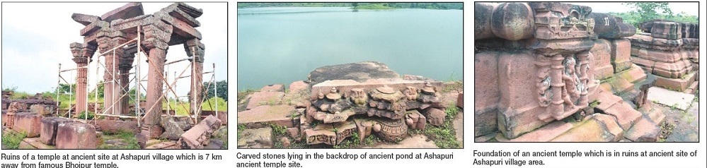 When one visits famous Shiv temple of Bhojpur, he hardly has knowledge about Ashapuri village dotting ruins of at least twenty six ancient temples. The ‘mandap’ of one temple has withstood with the blazes of harsh time and rest of the temples has only foundation stones. Near them is a heart winning pond which add to the beauty of the historical place.