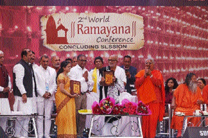 “RAMCHARITMANAS is an universal spiritual epic which is meant for welfare and development of every living being. Ramkatha belongs to the person who reads it and character of Lord Ram cannot be portrayed in a frame. Ramayana is for all and for welfare of everyone without any religious and communal differences,” said senior saint Morari Bapu. He was addressing the concluding ceremony of 2nd World Ramayana Conference at MLB Ground on Wednesday.
