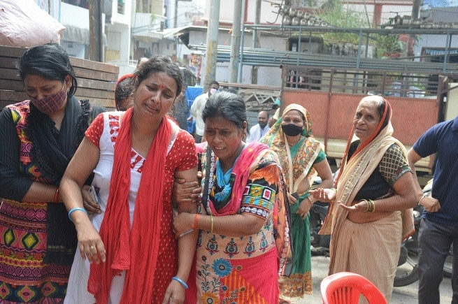 Relatives of the deceased boy mourning at the hospital.