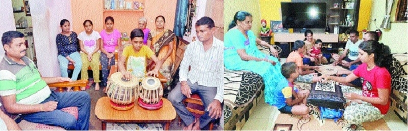 (left) Malwar family enjoying the tabla recital of their youngest members. (right) Members of Dhawangale family sharing some quality time with kids.