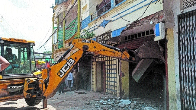 The district administration razed the illegally constructed house of history-sheeter Mukhtar Malik, who was arrested a day before, in Bhopal on Wednesday. The property was spread on about 2000 sq feet positioned in the premises of Ahata Rustam Khan in Shyamla Hills area.