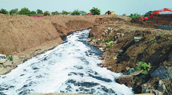 The polluted water full of froth due to presence of excess detergent in the waters of Pili River explaining the condition of water bodies of the city. (Pic by Kaushik Bhattacharya)