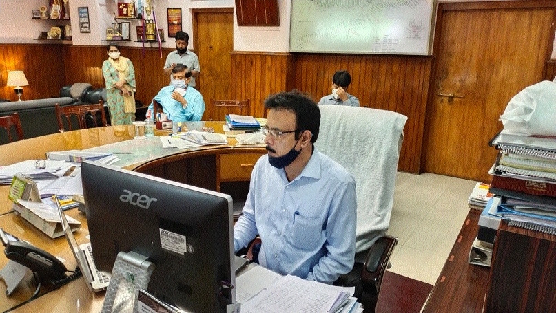 DRM Jabalpur Sanjay Biswas addressing a virtual press conference.