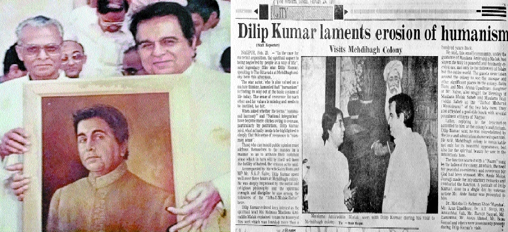 THE legendary actor Dilip Kumar’s visit to Nagpur 30 years back was made memorable by a visit to Mahdi Bagh Colony in the city. It was in February 1991 that Dilip Kumar, along with his wife Saira Banu, came on a visit to Mahdi Bagh – a unique example of community living. The head of the community, Maulana Amiruddin Malak Saheb, welcomed the actor couple and explained the beliefs of the progressive Muslim community known as Atba-e-Malak Badar. The thespian spent close to four hours in the colony and was deeply impressed by the social and spiritual practices of the residents and their harmonious co-existence with people of other faiths.