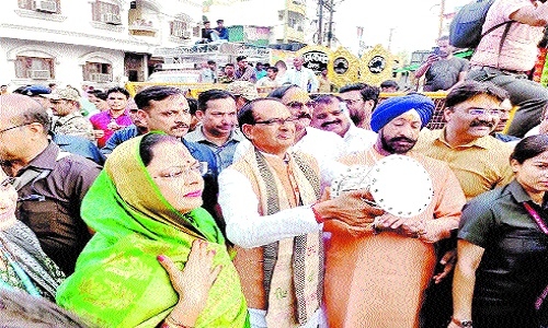 The Mahakal Sawari reached the Dussehra ground, where the Chief Minister along with his wife worshipped the Mahakal palki near the Shami tree. The Chief Minister prayed to Mahakal for the people of the state and prayed for the success of the event. Meanwhile, Chouhan also participated in the Mahakal Sawari by playing the damru with devotion. As soon as the ride reached Freeganj, light rain had started. He went on a ride amidst rain and greeted the people of Ujjain. The tableau of Shri Mahakal Lok was also taken out in view of the dedication of Mahakal Lok to be held on October 11 in the ride. The Chief Minister appealed the general public to ensure maximum participation in the dedication program of Shri Mahakal Lok.