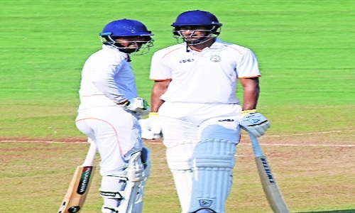 After having conceded a small 35-run first innings lead, Vidarbha were tottering at 79-3 when Ganesh and vice-captain Akshay Wadkar joined hands in the middle. They matched each other in all aspects, be it running between the wickets stealing singles, converting the singles into twos, punishing the loose deliveries and playing strokes all round the wicket with supreme authority. The only difference was their personal scores at end of the third day of their Group D match at Vidarbha Cricket Association’s Civil Lines ground on Thursday.