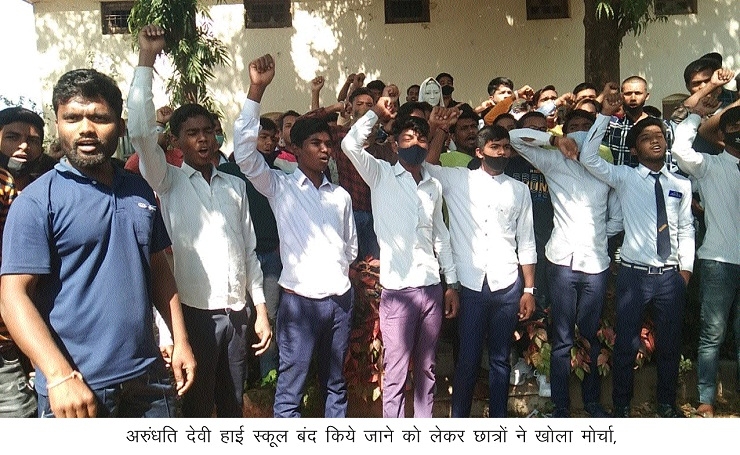 Present and former students are lined up after the news of Arundhati Devi High School, the oldest high school of Arang, on Sunday. The students decided to submit a memorandum under the banner of High School Bachao Samiti to Government-Administration against closing down Arundhati Devi High School in a meeting on Saturday. On Monday, all the students will register their protest with the Sub-Divisional Magistrate and Block Education Officer, Arang. The next strategy will be decided thereafter. School children carried out sloganeering to save the High Schol after paying respect to Arundhati Devi’s statue on Saturday.
