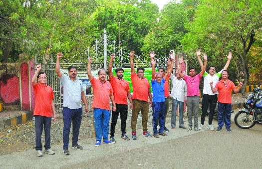 Morning walkers raising slogans in front of Maharajbag zoo. (Pic by Anil Futane)