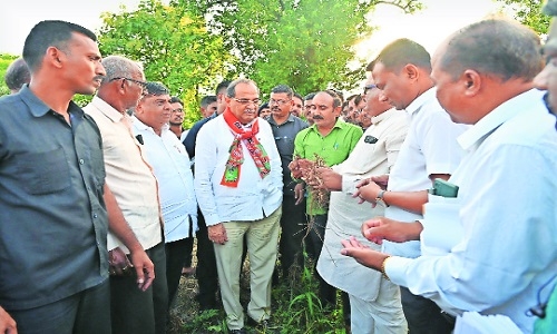 Mainly, soybean crop has been damaged in a big way in the district. During the interaction, farmers informed the Revenue Minister about the losses caused by ‘yellow mosaic virus’ disease on soybeans. He discussed with the farmers about taking appropriate measures for pest control. On this occasion, Minister ensured that the panchnama of the crop damages in the district was done. He also said that the pending panchnamas, if any, would be completed. Vikhe Patil also inspected the sweet lime crop in the field of Bhagwan Kameria, a farmer from Pawanwadi. On this occasion, he suggested that research should be done on varieties of oranges and sweet lime crops.