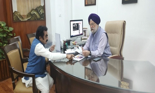 Member of Parliament Rakesh Singh, on Thursday met Union Housing and Urban Affairs Minister Hardeep Singh Puri in New Delhi and submitted a proposal for selecting Jabalpur as New Green Field City.