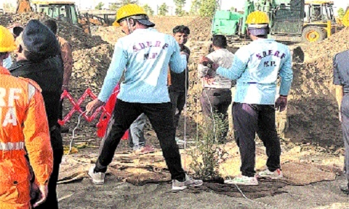 IT has been three month now when an 8-year-old innocent boy fell victim to a 60-feet deep open borewell in Vidisha district and now another tragic incident had happened in Sehore district where a two-and-a-half-year-old girl fell into an open borewell in village Mungavli. The rescue operation was on till the filing of this report. NDRF and SDRF teams with police are working hard to rescue the girl. DIG (Bhopal Rural) Monika Shulka reached the spot. Sehore Collector incharge, SP, SDM, SHO Kotwali and other officers of the administrative department rushed to the spot and made sure that the rescue operation run swiftly. News from village Mungavli which is around 5 kilometres from the district headquarters saddened the residents of the entire district. People started praying for Shrishti Kushwaha, daughter of Rahul Kushwaha, who fell into a 300 feet deep borewell at around 1 pm on Tuesday. According to the information, Shrishti was playing in a farm next to her father’s farm while her mother and grandmother were working at a little distance from her. While playing she went near that open borewell and fell into it. The borewell is said to be 300-feet deep and Shrishti got stuck at about 25 feet.