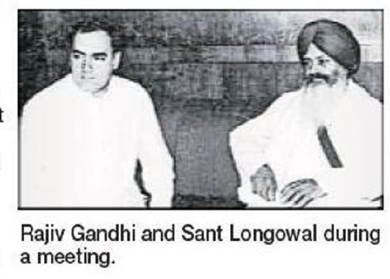 Rajiv Gandhi and Sant Longowal during a meeting.