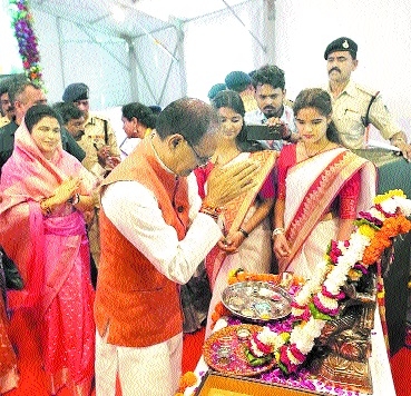 Chouhan welcomed the students attending the programme by showering flowers and after Kanya Pujan, inaugurated the programme with lighting of lamp and Saraswati Vandana in front of the statue of Goddess Saraswati.