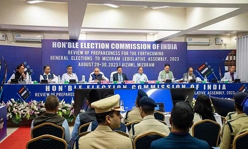CHIEF Election Commissioner (CEC) Rajiv Kumar on Wednesday met leaders of various political parties here to discuss poll-related issues ahead of the Mizoram Assembly elections scheduled later this year. Talking to reporters, Kumar said 95 polling booths will be managed by women and 11 by people with disabilities. He said the team met representatives of various parties including the Congress, Bharatiya Janata Party (BJP), AAP and Mizo National Front (MNF) to discuss election-related issues.