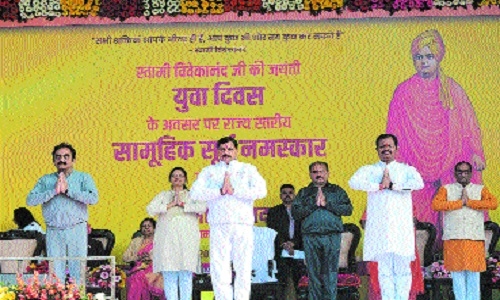Swami Vivekananda established the importance of Indian culture and Sanatan in the world. Even in difficult times, after taking sanyasa, he studied religion and spirituality under the guidance of Swami Ramakrishna Paramahansa while pursuing education. He highlighted the characteristics of India before the world. The programme started with the national song Vande Mataram. Madhya Pradesh anthem was also presented on the occasion of collective Surya Namaskar. The programme winded up with the rendition of the national anthem. Principal Secretary School Education Rashmi Arun Shami and Commissioner Anubha Srivastava also took part in the programme.