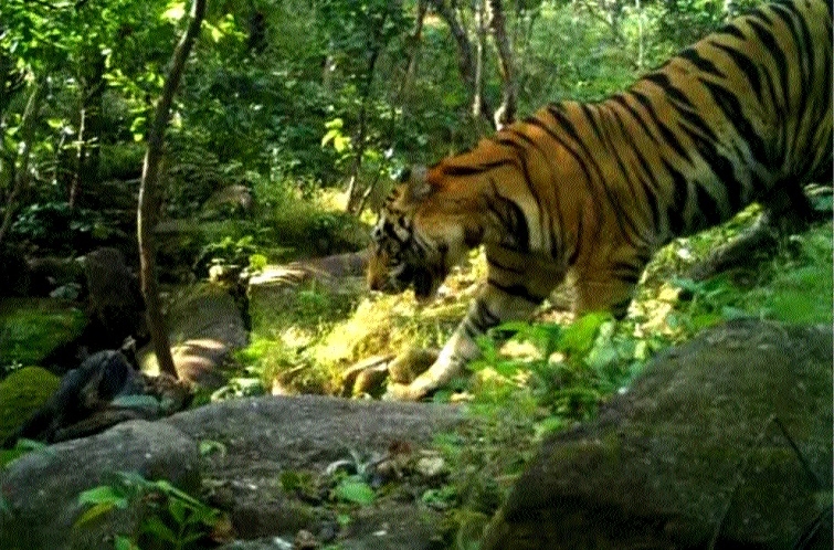 In a thrilling development for both wildlife lovers and tourists of the Sarguja region, a tiger has been spotted in Guru Ghasidas Tiger Reserve, located on the border of Surajpur and Korea districts. The tiger was caught on a trap camera while hunting a buffalo and a cow in the forests near Temri village. This is the first confirmed sighting of a tiger in the reserve since it was declared a Tiger Reserve.