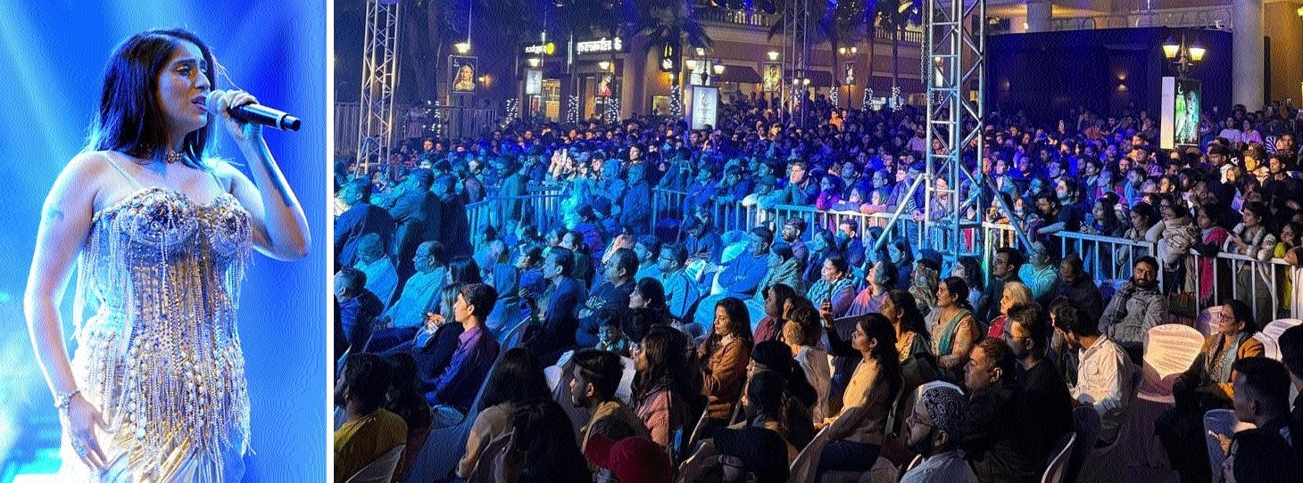 AMBUJA Mall celebrated its 11th anniversary with a dazzling live performance by Bollywood sensation Neha Bhasin in the mall premises in Raipur. Known for her soulful voice and chart-topping hits, Neha lit up the stage captivating the audience with her high-energy renditions of iconic tracks like Kut Kut Bajra, Dhunki, Aslame Ishku Yaara, Din Shagna Da, Laung Gawacha, Nai Jaana, Lathe Di Chadar and Madhaniya. The audience was completely mesmerised by Neha’s electrifying performance and enjoyed an unforgettable evening of music and entertainment.