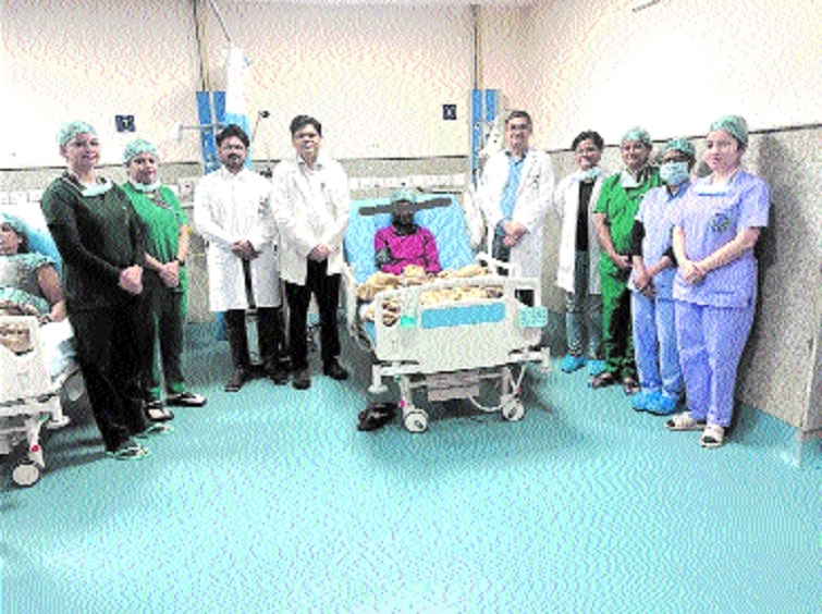The entire team of doctors and paramedics along with the patient after the successful surgery.