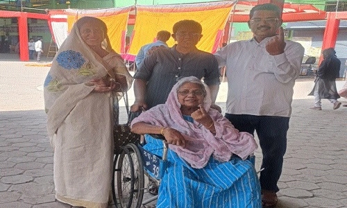 Rajkumar Samiaya stays with his son at Mumbai but to cast his vote he came to Sagar with his wife. He was asked by security personnel to directly come to vote as being senior citizen they do not need to wait in a queue but he politely refused, stood in queue, waited for his turn to give his vote. Voters have show enthusiasm to vote since voting started in morning at 7 am. As it was hot hence in morning hours long queue were seen outside at most of the polling booths. At village Genhuraas Bujurg coming under Surkhi assembly segment, a bridegroom came to give his vote. Sudhanshu Ahirwar marriage is on May 8 and hence pre-wedding rituals were in progress but he took time to go and vote. It may be mentioned that polling booth no 177 at Govt High School at Genhuraas Bujurg was transformed into a model polling booth. Here a big tent like a marriage function was erected for the convenience of voters. Toys were arranged by anganwadi centre for children of voters to play while their parents cast their vote. Ayush and Health Department arranged for first aid services. High School arranged water cooler of polling teams and BLO set up a Voter Facility Counter.