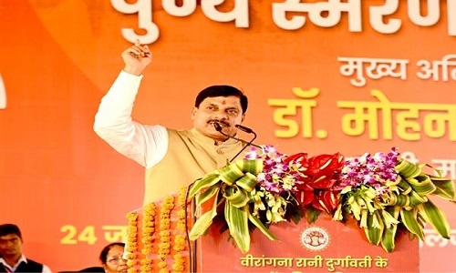 Paying tributes to the utmost courage, bravery and valor of Veerangana Rani Durgavati, the warrior queen of Gondwana regime, Chief Minister Dr Mohan Yadav announced that the under construction flyover from Madan Mahal and the Jabalpur Airport will be named after her. The Chief Minister was addressing a huge gathering of tribal people and locals during a programme organised to mark the 461st ‘Balidan Diwas’ of Rani Durgawati at Veterinary College ground, on Monday. Speaking on the occasion, CM Dr Yadav stated that Rani Durgavati not only defeated Emperor Akbar's army three times but also provided an innovative and people-centric governance system in the areas of good governance and water management. He said apart from naming the fly-over and the airport in Jabalpur after the warrior queen, the state government will also make efforts to obtain permission from the central government to name a stadium after Rani Durgavati in Garha.